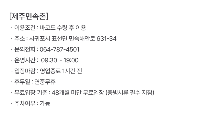 입장권 +한라산 아래 첫마을(제주민속촌점) 메뉴 택1 (소인) : 구매일 + 30