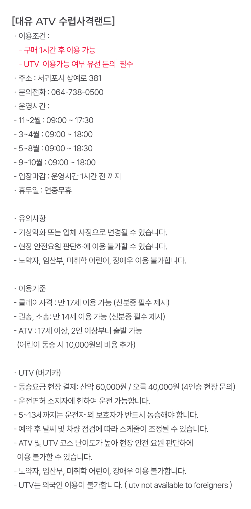 클레이+atv올레코스 (1인권) : 이용일 + 30
