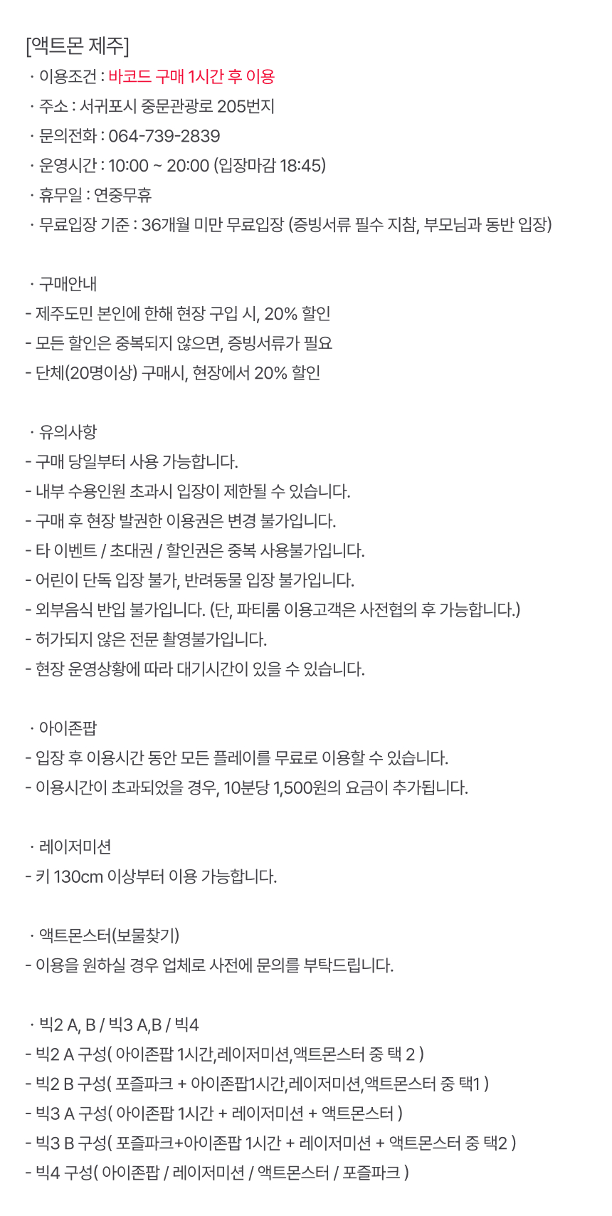액트몬스터(보물찾기) 입장권 (소인) : 이용일 + 30