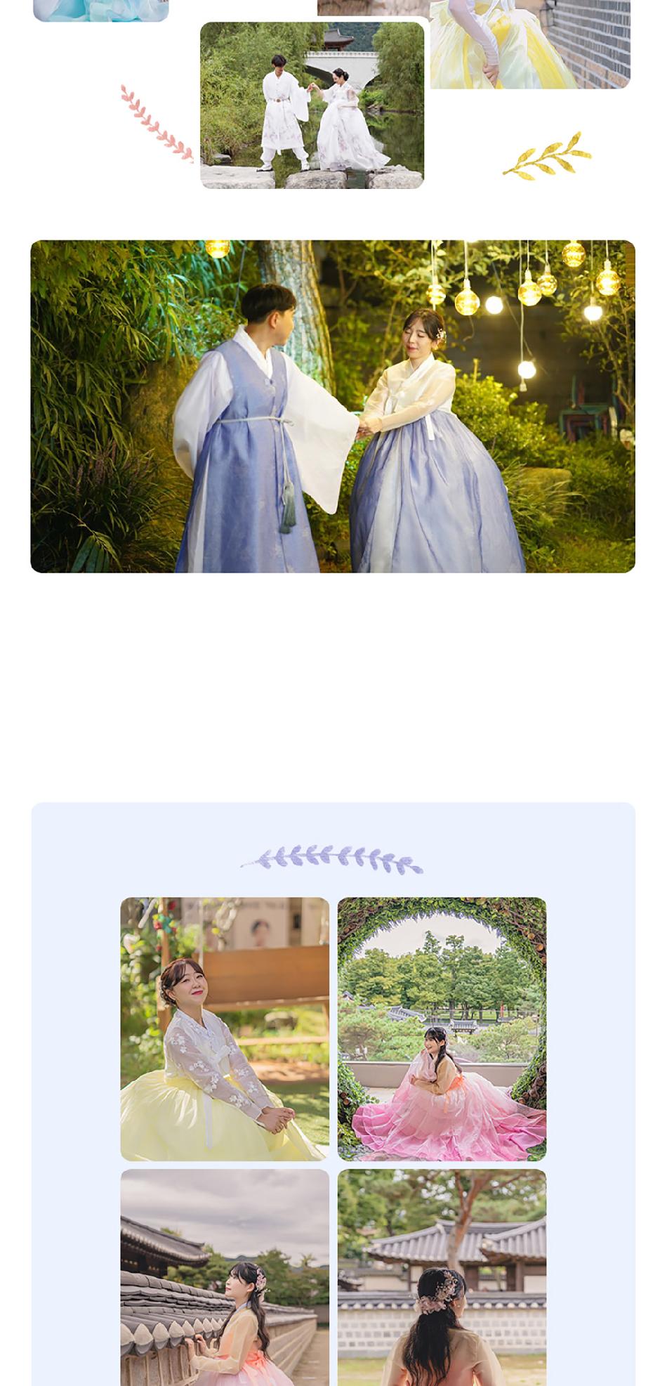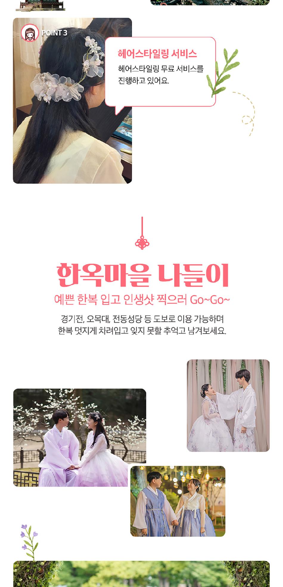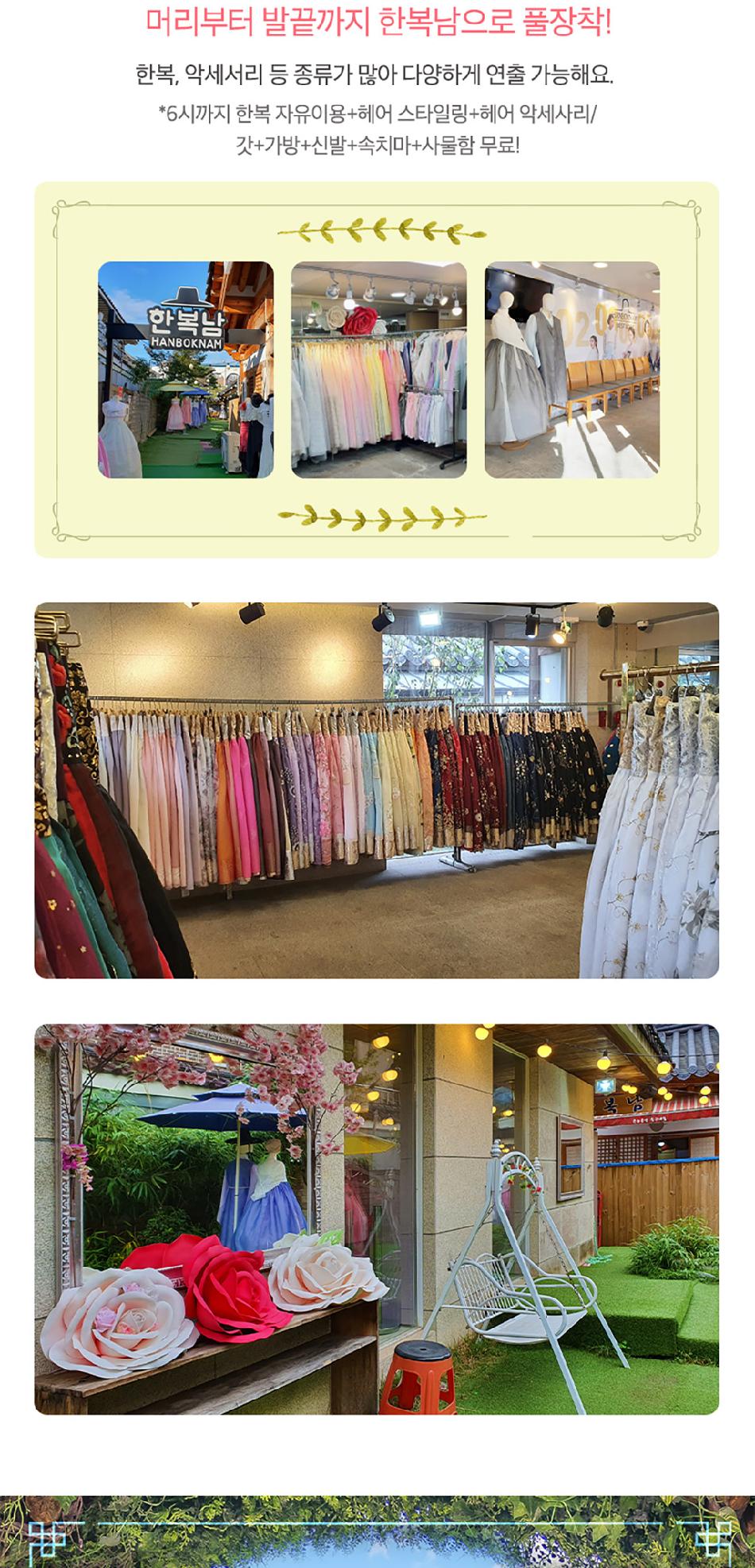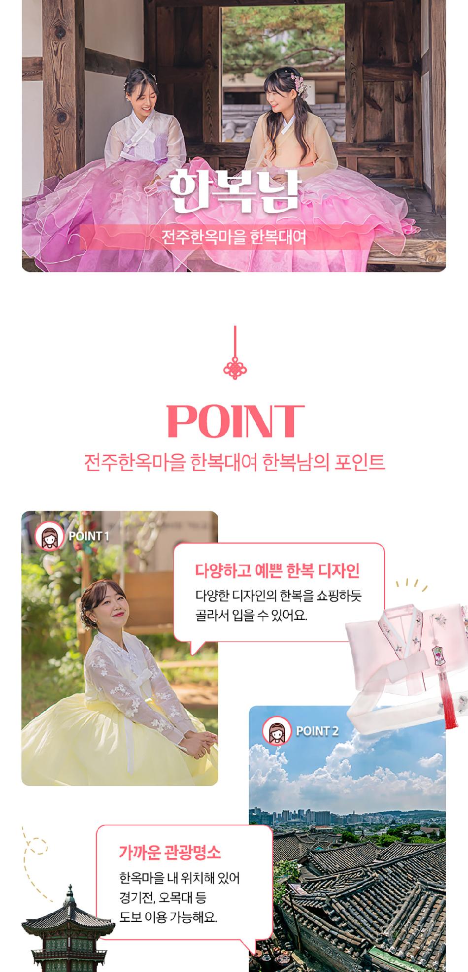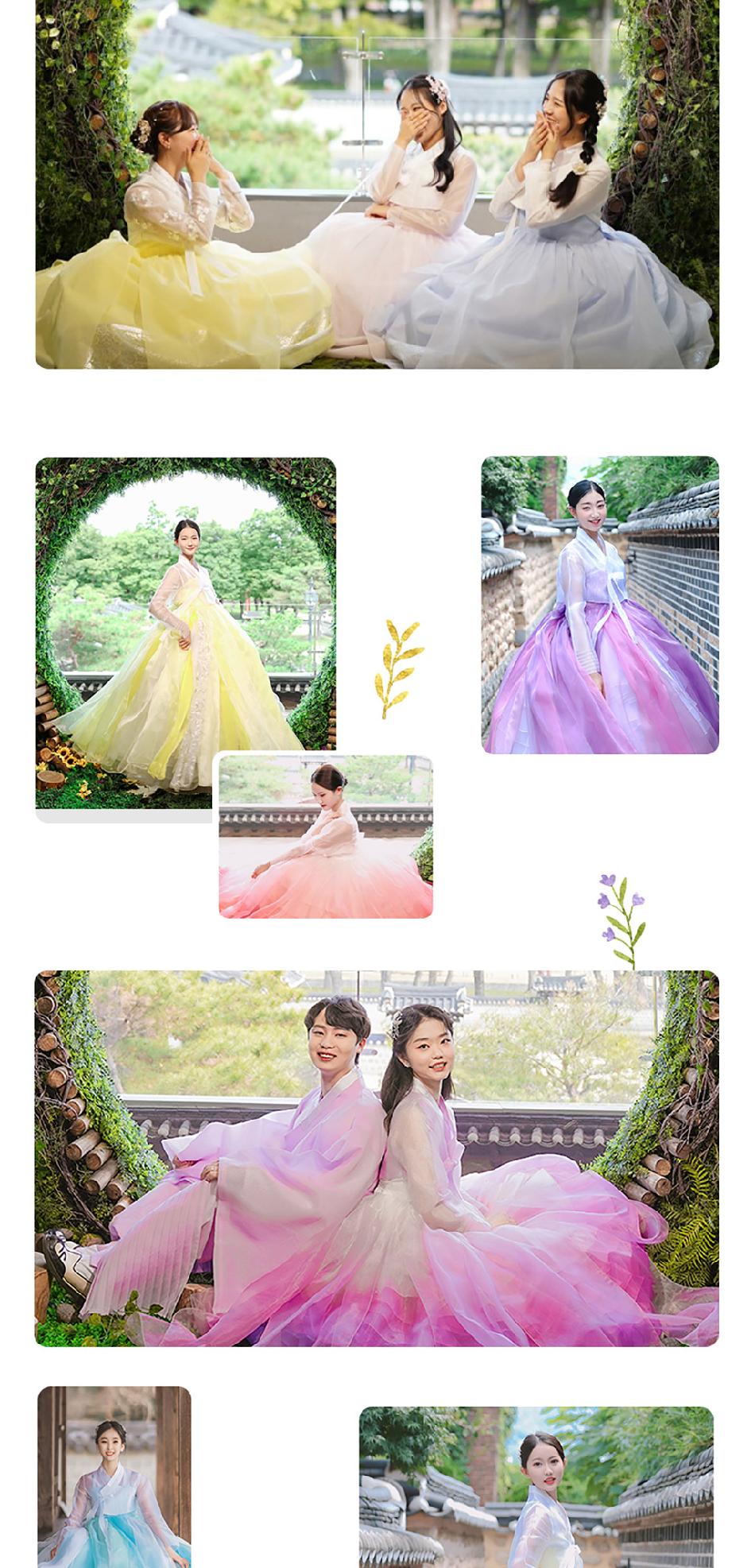 * 전통한복은 심플하고 단아한 디자인이며, 테마한복은 퓨전한복 및 캐릭터 한복이 포함됩니다.