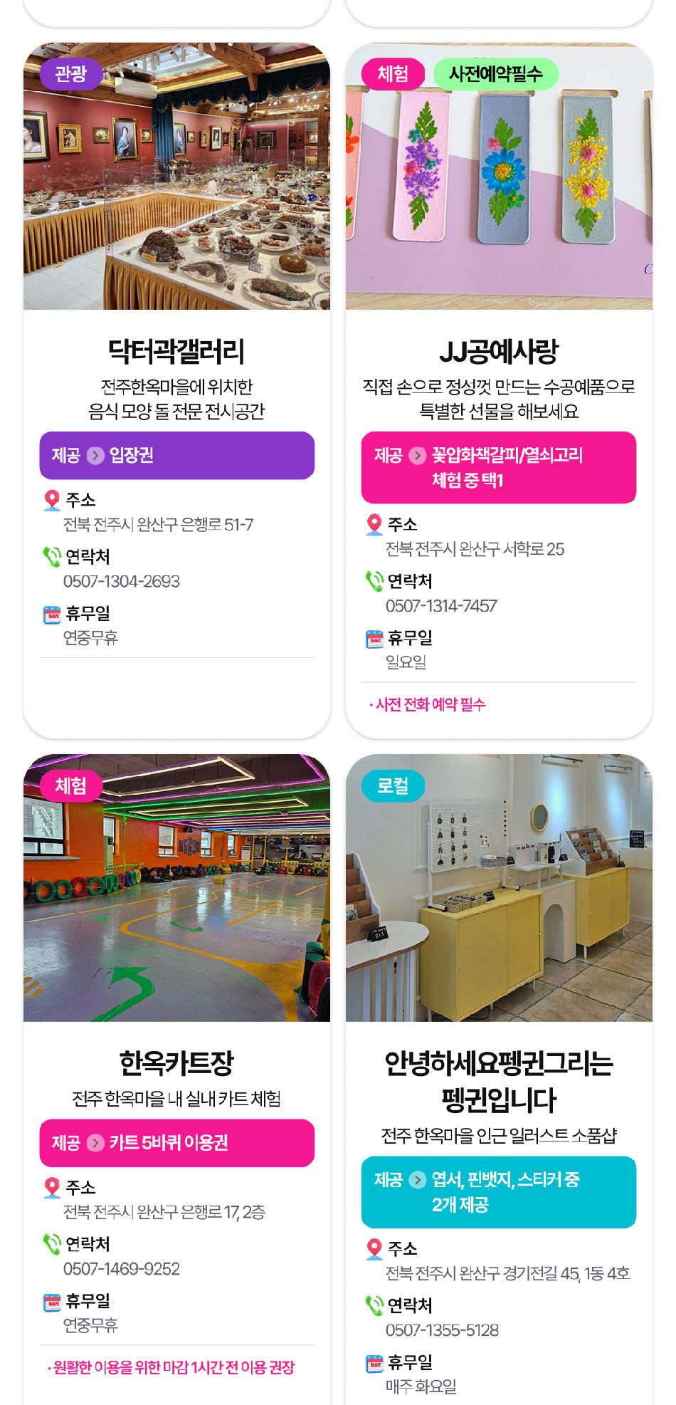 - 모든 가맹점의 이용시간 및 휴무일과 유의사항등 자세한 내용은 방문 전 홈페이지 및 유선으로 확인 바랍니다.