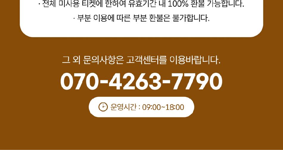 - 2인이상 단체티켓의 경우 부분 사용처리 불가합니다.
