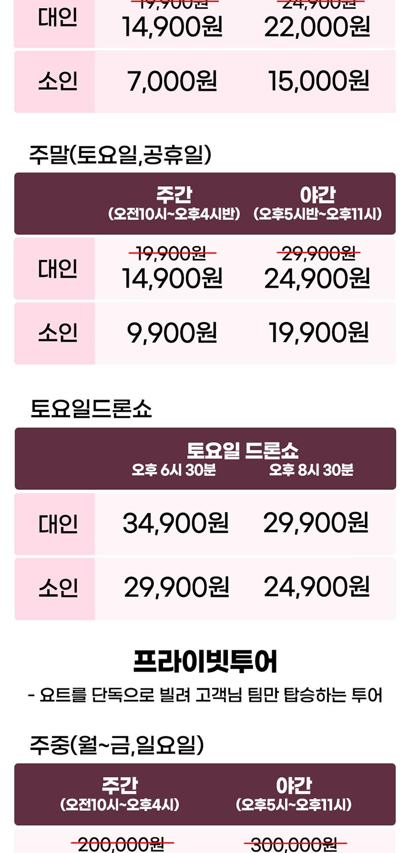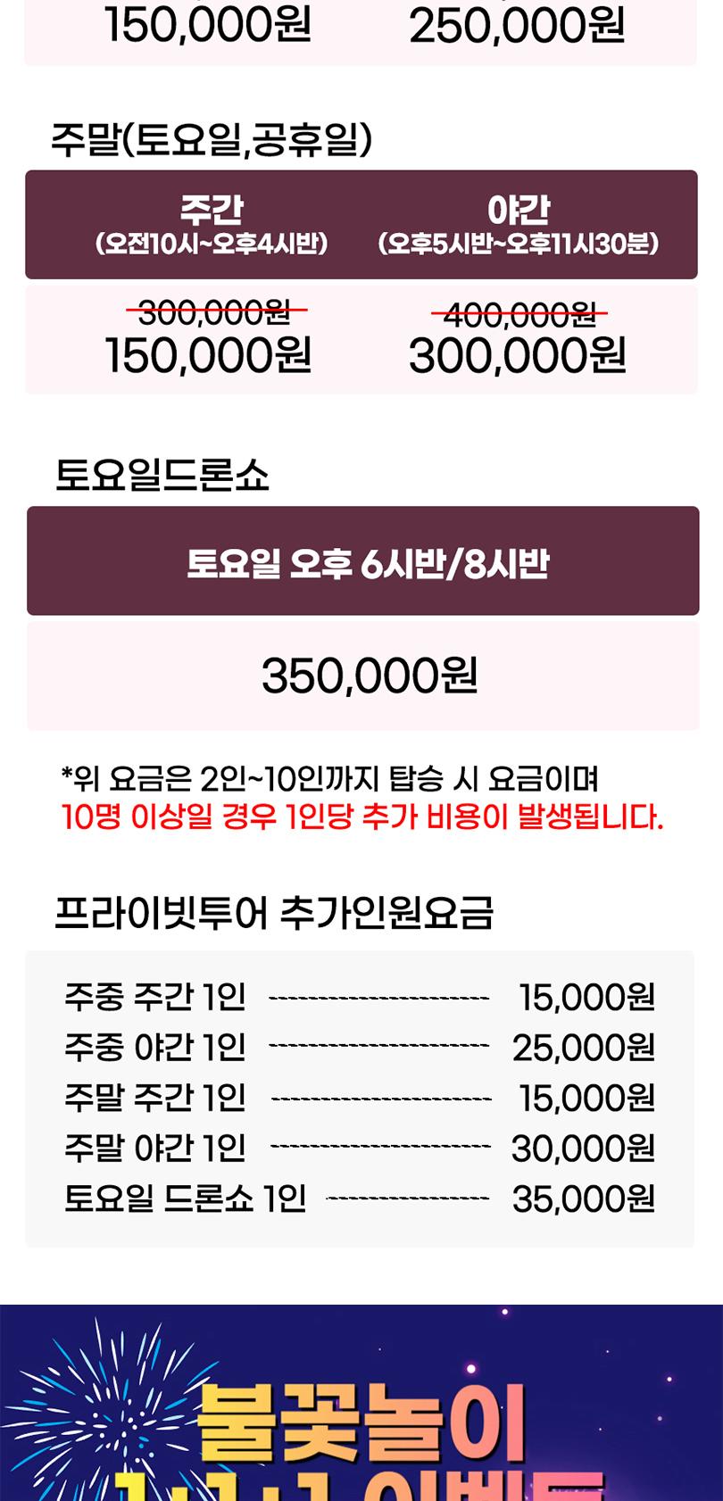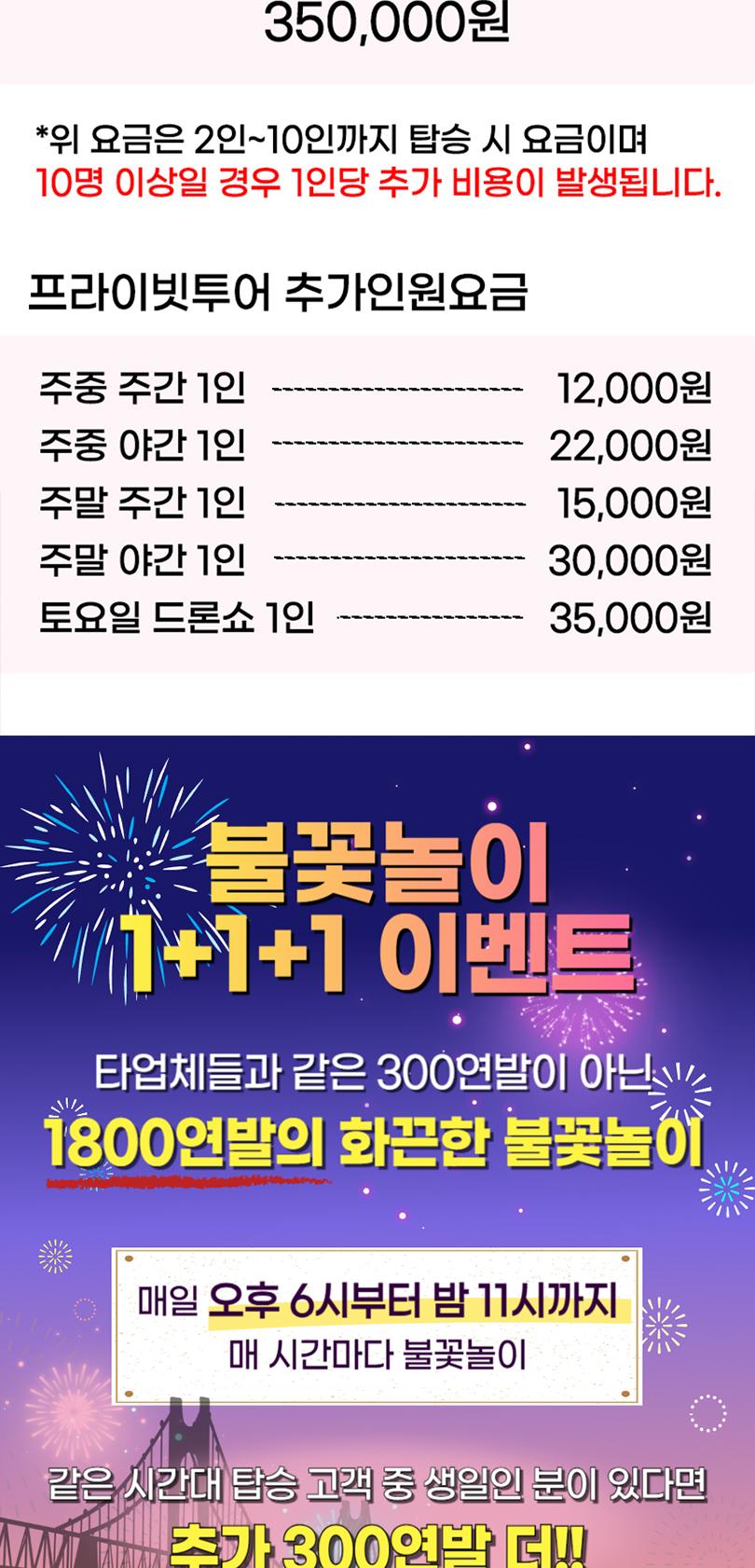 * 프라이빗 투어는 기본 최대 10명까지 이용가능 하며, 인원 초과시 추가비용이 있습니다.