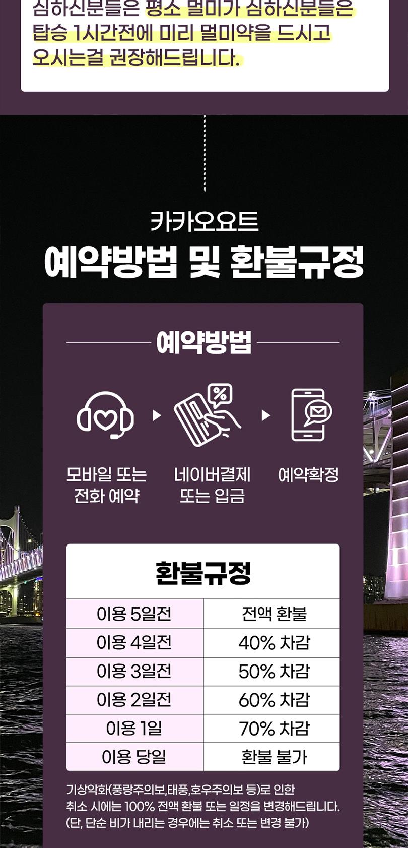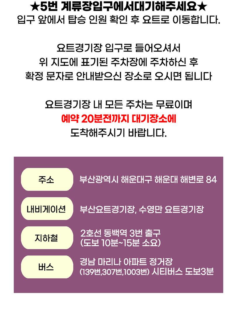 * 탑승 시간까지 도착하지 못하신다면 노쇼로 인해 환불이나 탑승이 불가능합니다.