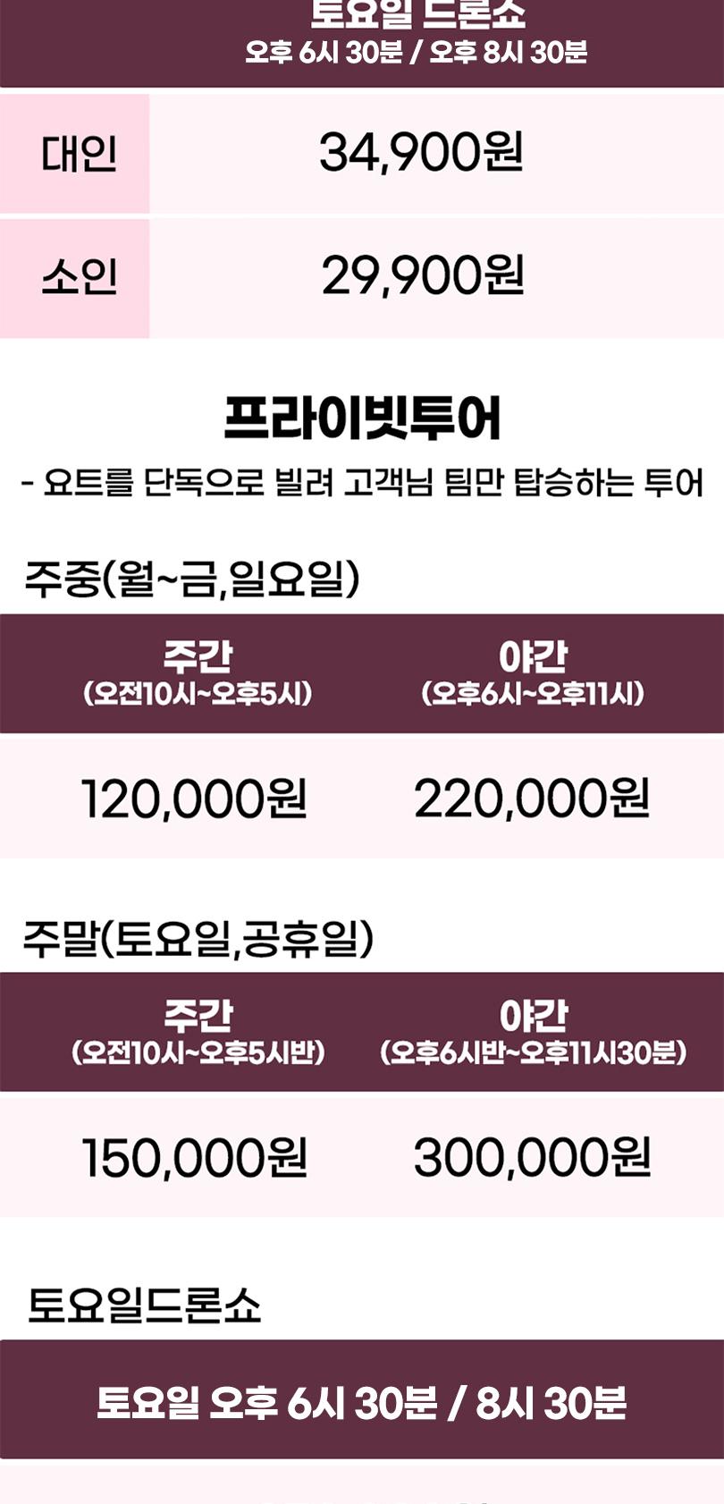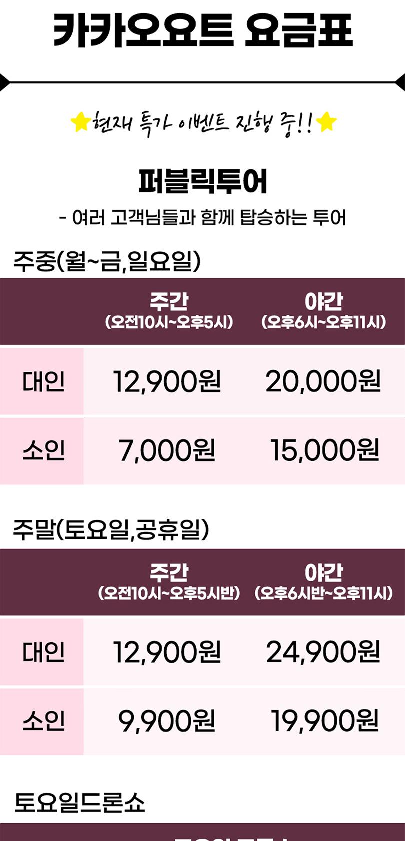 * 주중 : 월~금,일요일 / 주말 : 토요일&공휴일