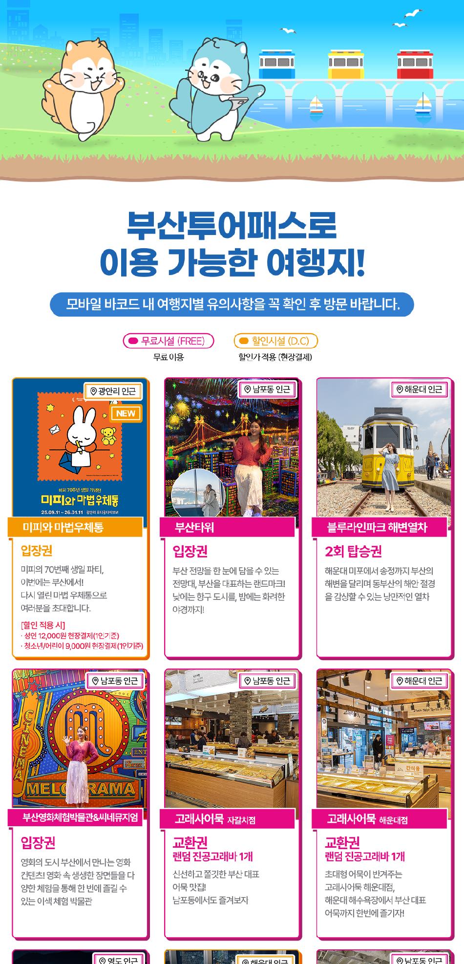 * ※ 이용가능 여행지는 실시간으로 변경될 수 있으니 모바일 바코드 내 `투어패스 이용가능 여행지`를 확인 후 이용바랍니다.
