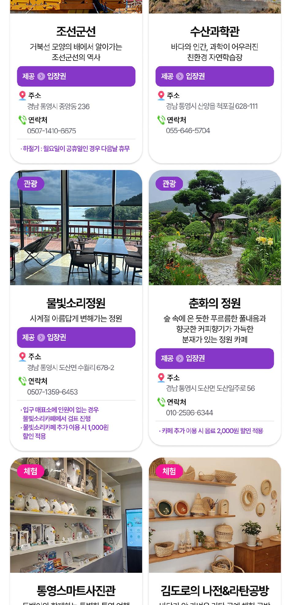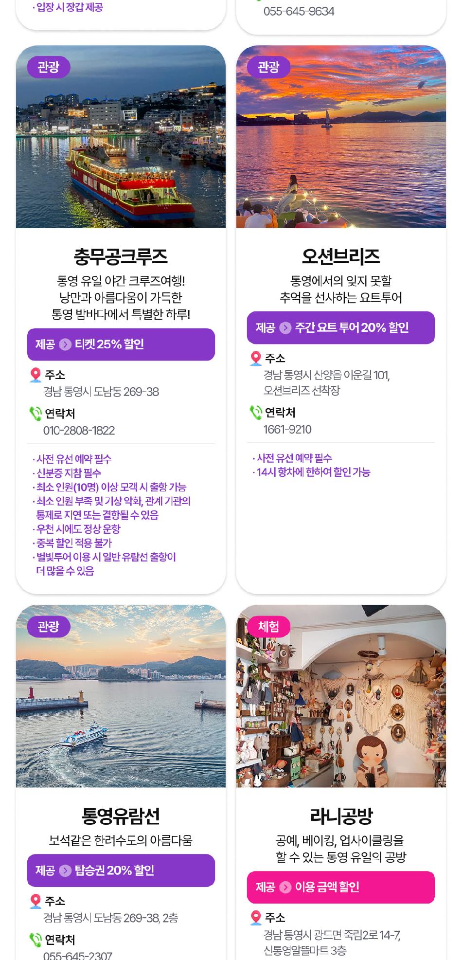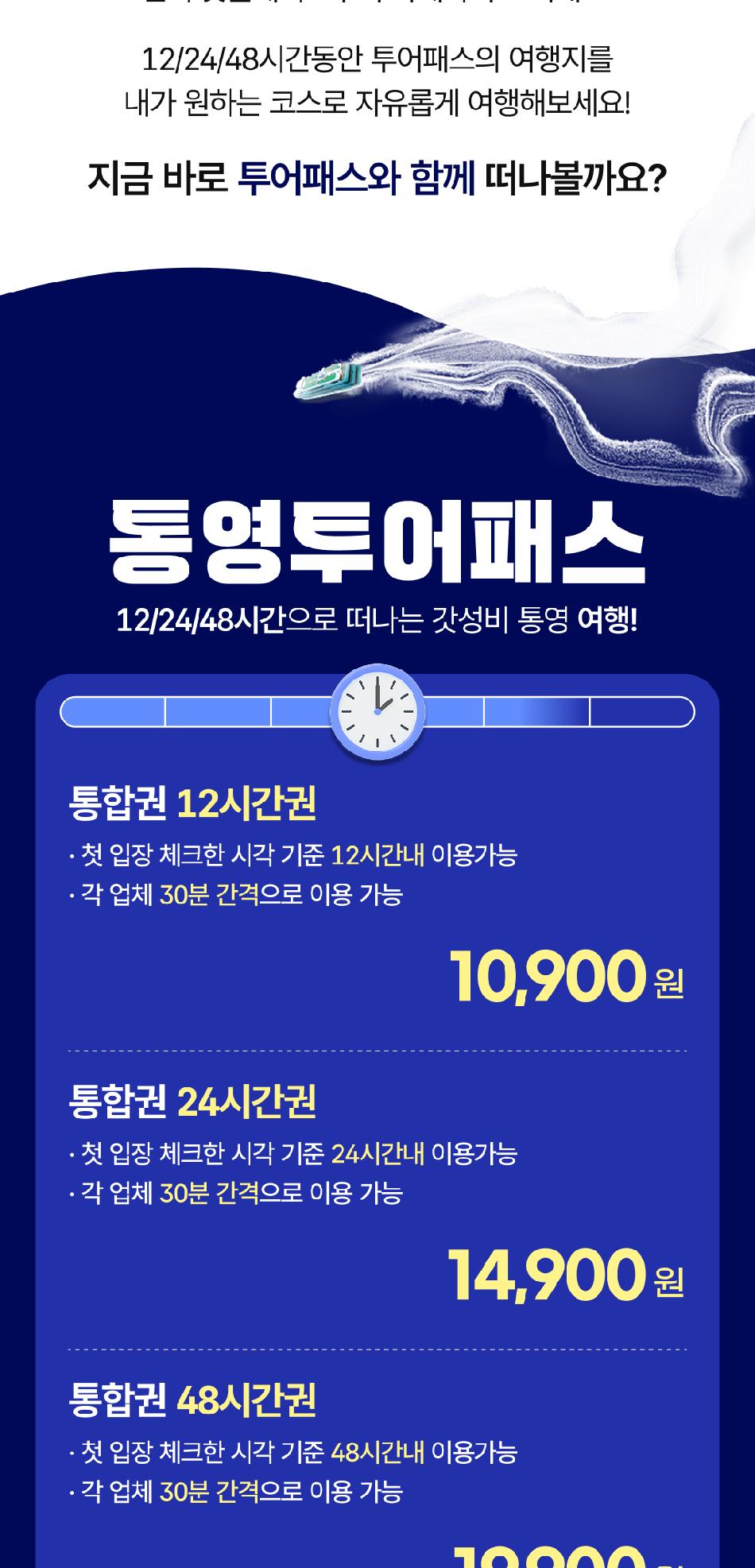 * 이용 가능한 업체 리스트는 구매 후에도 실시간으로 변경 될 수 있으니 모바일 티켓의 ‘투어패스 이용가능 여행지’를 확인 하시어 이용 바랍니다.