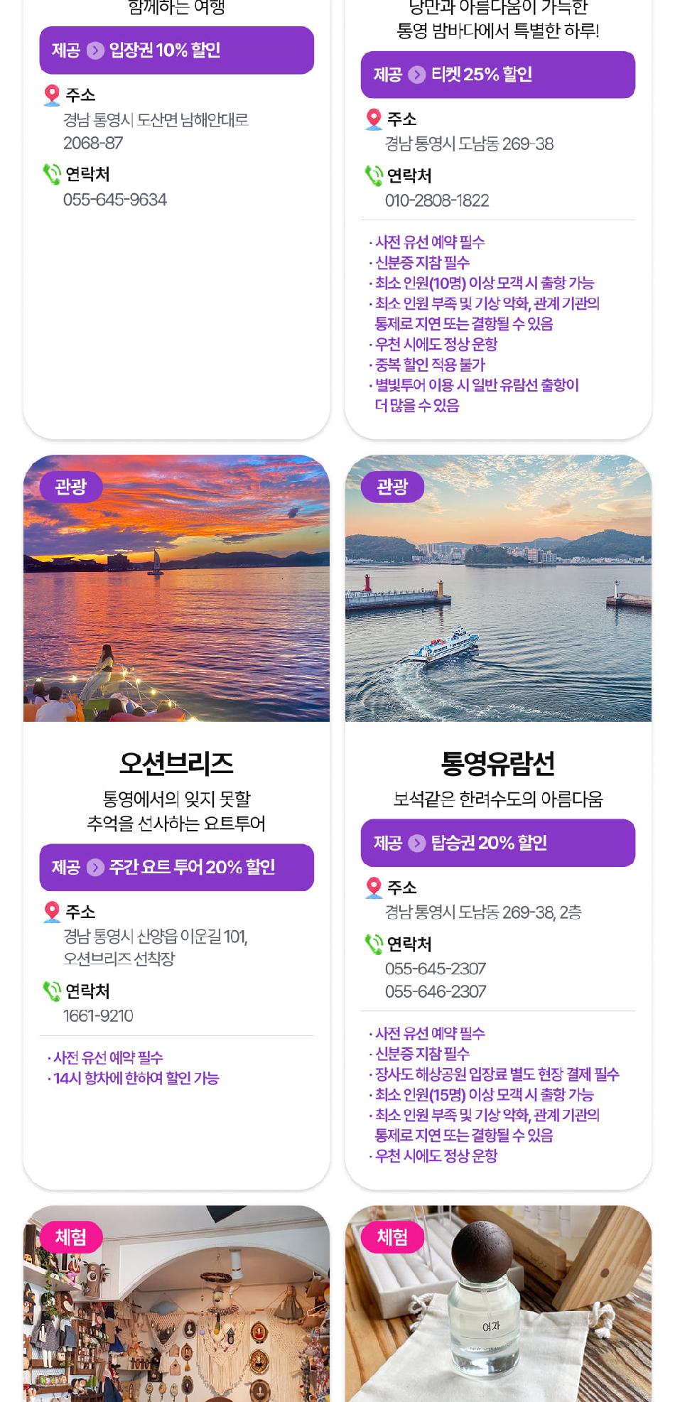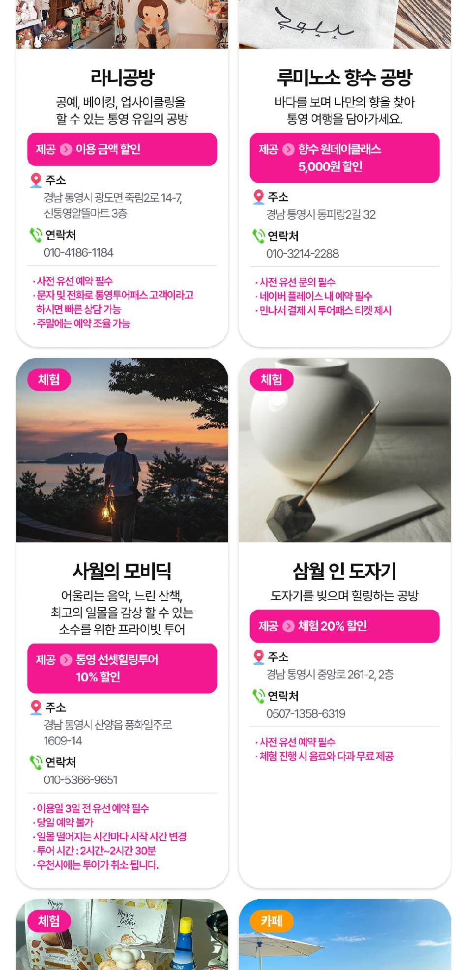 * 이용 가능한 업체 리스트는 구매 후에도 실시간으로 변경 될 수 있으니 모바일 티켓의 ‘투어패스 이용가능 여행지’를 확인 하시어 이용 바랍니다.