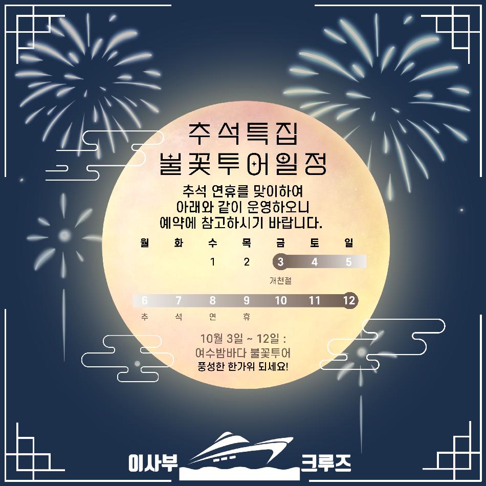 * 불꽃야경크루즈는 월별 출항시간이 상이합니다.