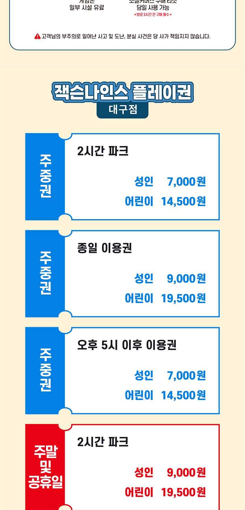 * 입장객(어린이,성인포함) 미끄럼 방지 양말 필수 착용 / 별도 구매 가능