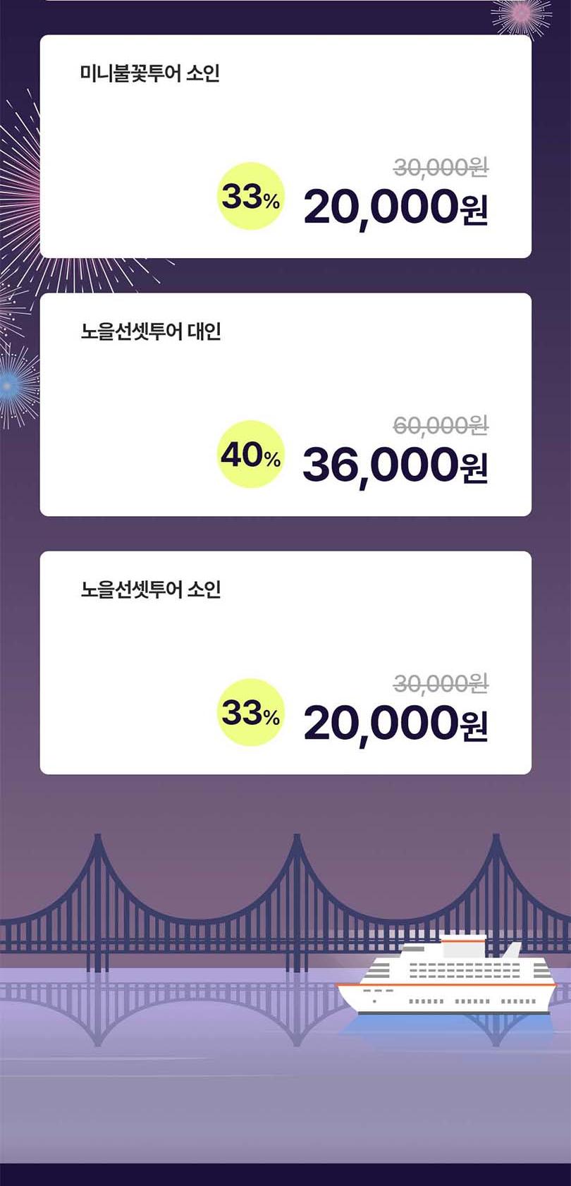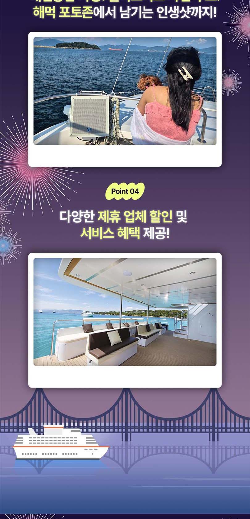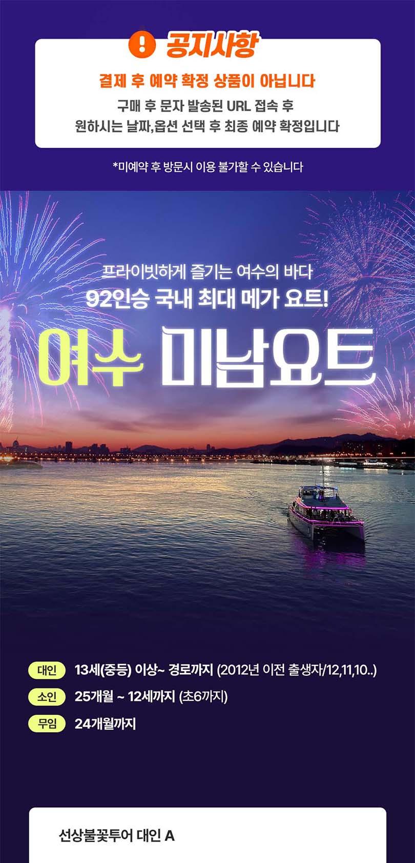 * 우천시에도 정상 운항, 선상불꽃도 정상 진행 단, 기상악화로 결항시 100%환불 처리