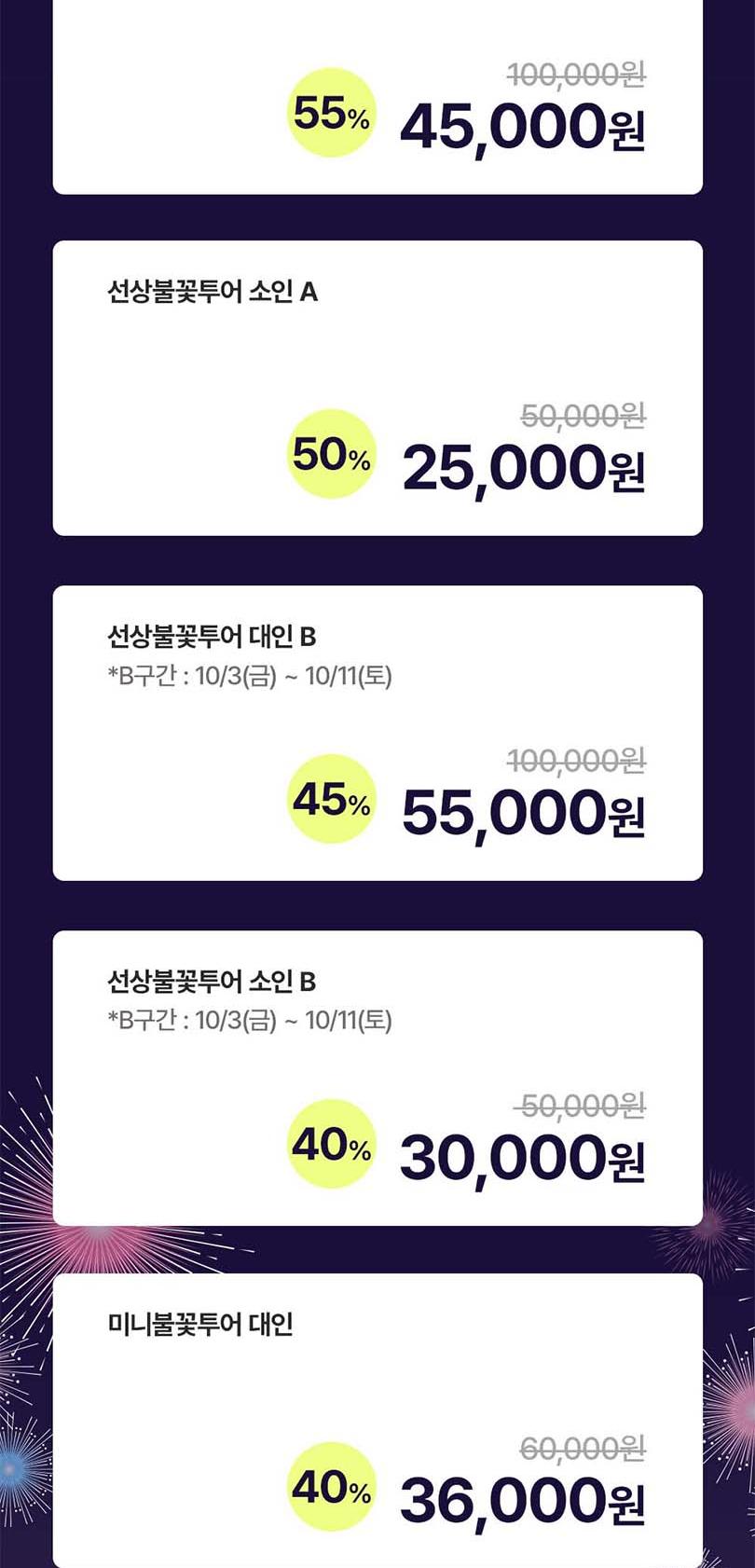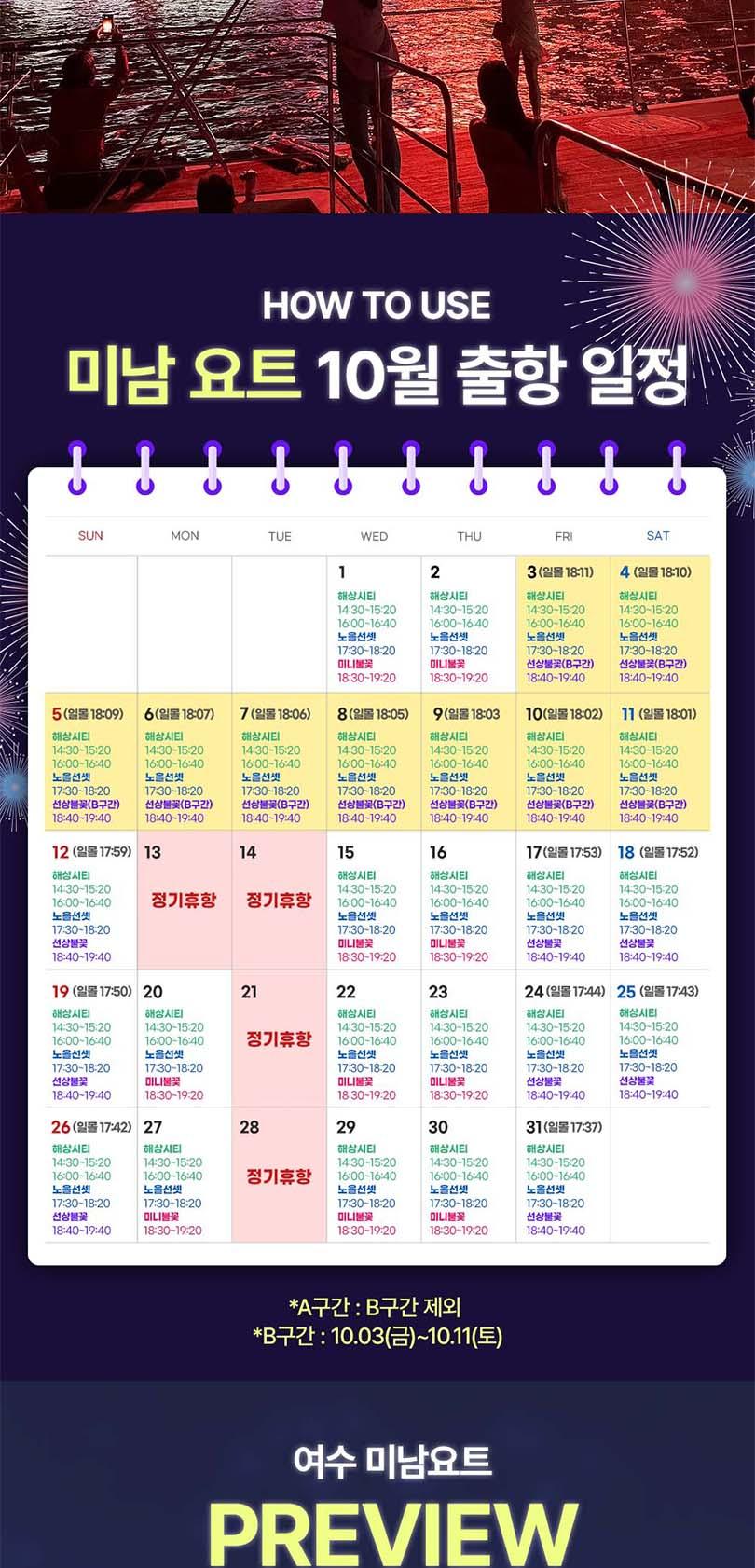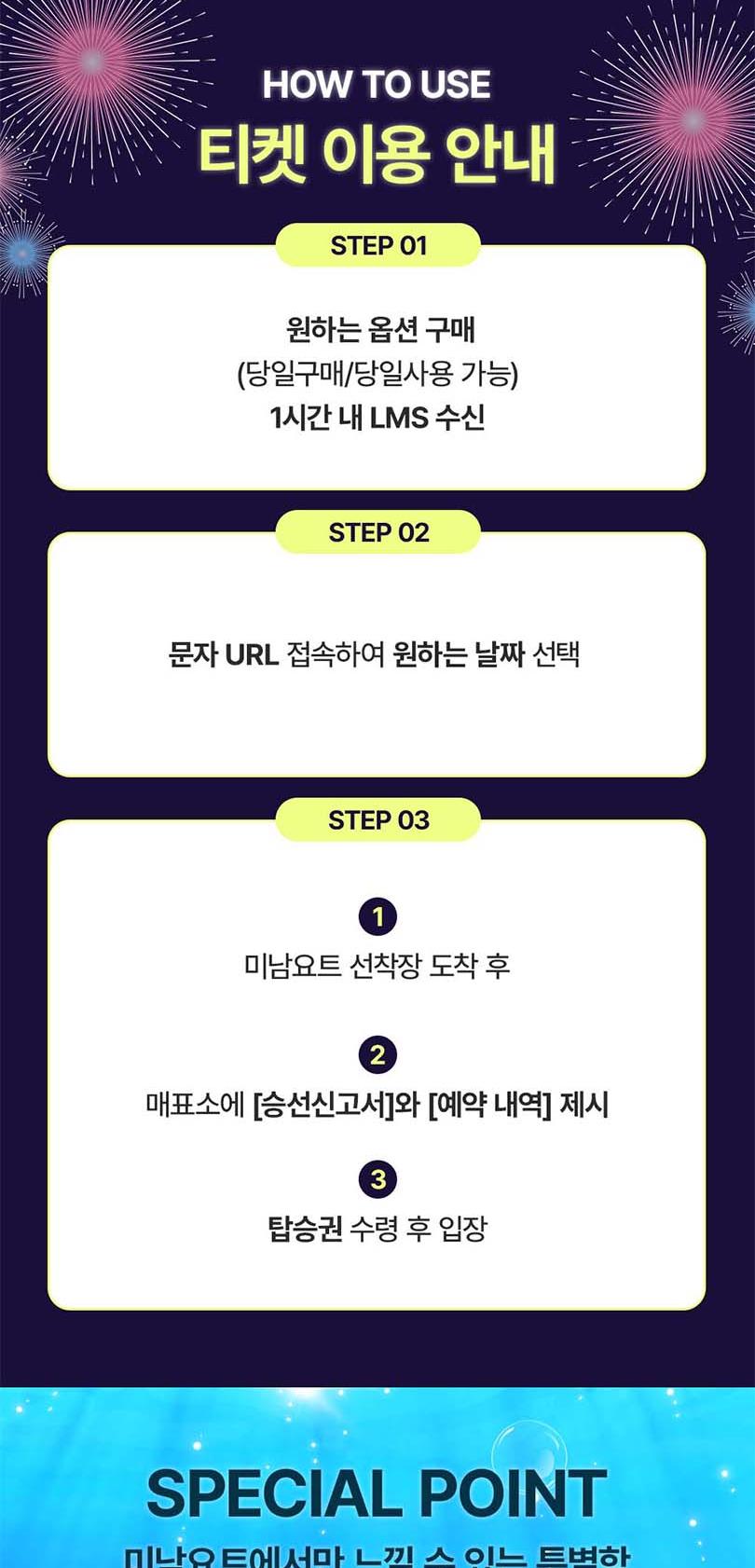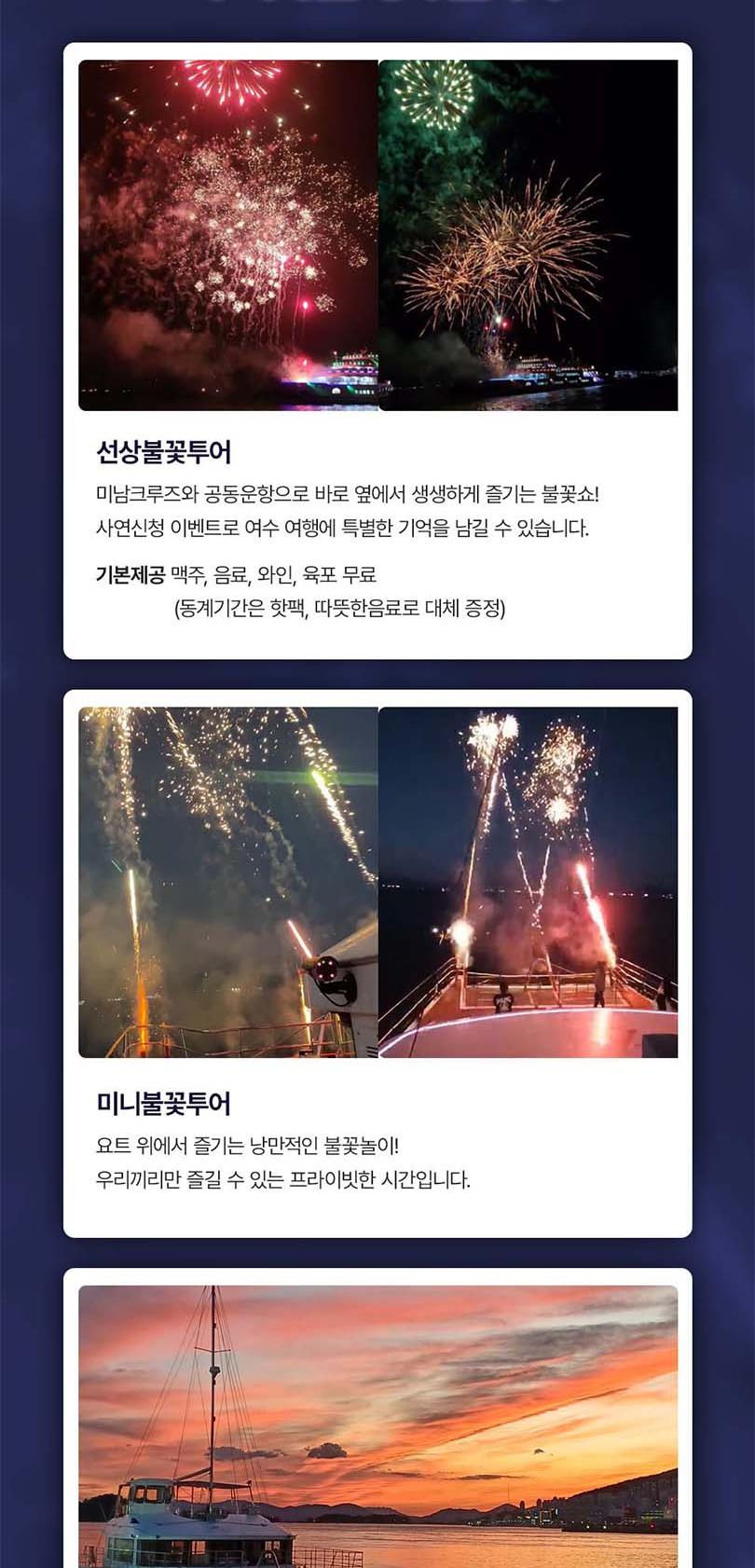 * 우천시에도 정상 운항, 선상불꽃도 정상 진행 단, 기상악화로 결항시 100%환불 처리