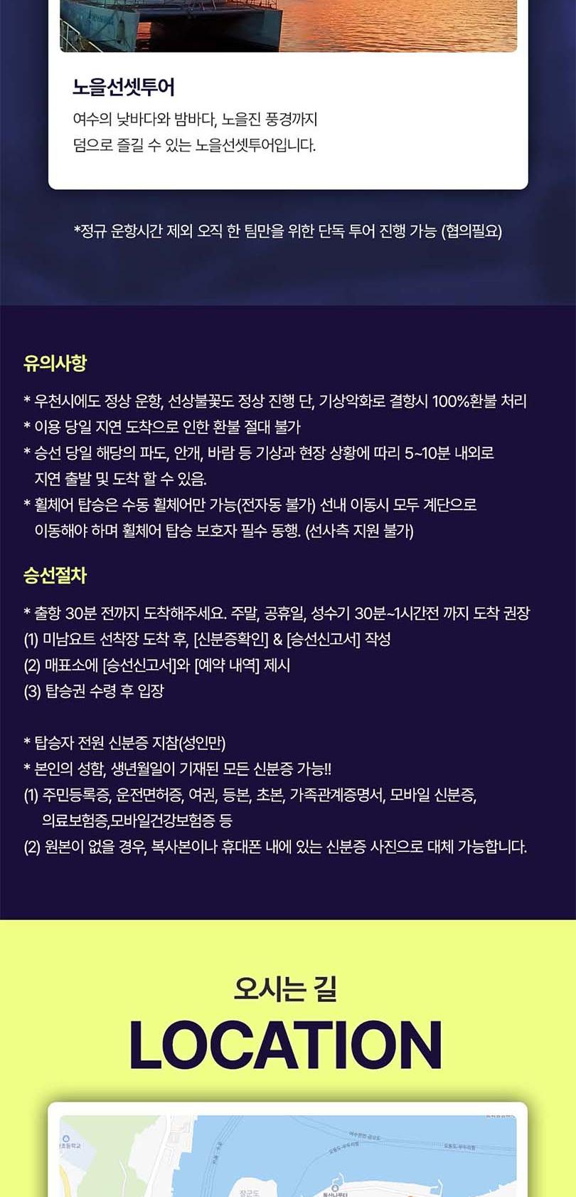 * 출항1-20분 전까지 도착해주세요. 주말, 공휴일, 성수기 30분전 까지 도착 권장