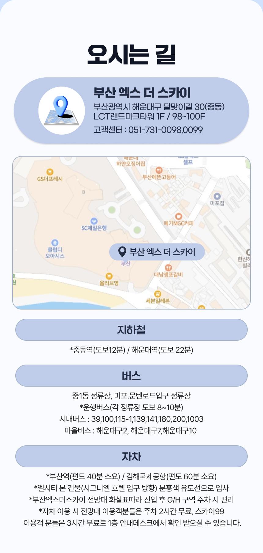 * 홈페이지 : https://www.busanxthesky.com/xthesky/xthesky.php