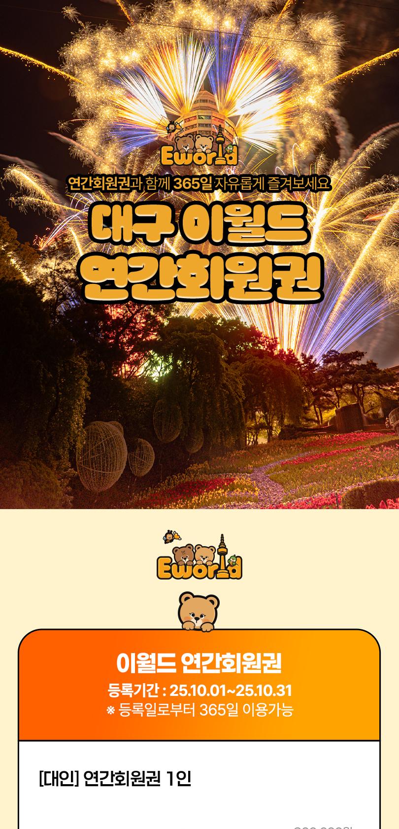 - 이월드 이용 고객 할인적용(일일요금) : 자유이용권 3,000원 / 연간회원권 2,000원