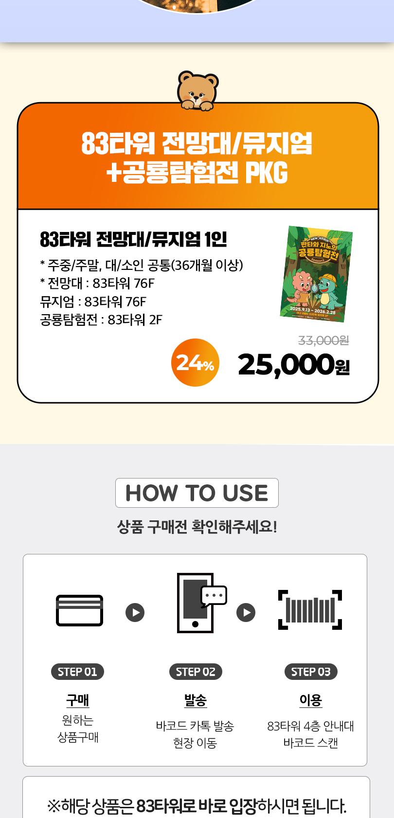 * 83타워 고객: 3만원 이상 구매 시 4시간 무료