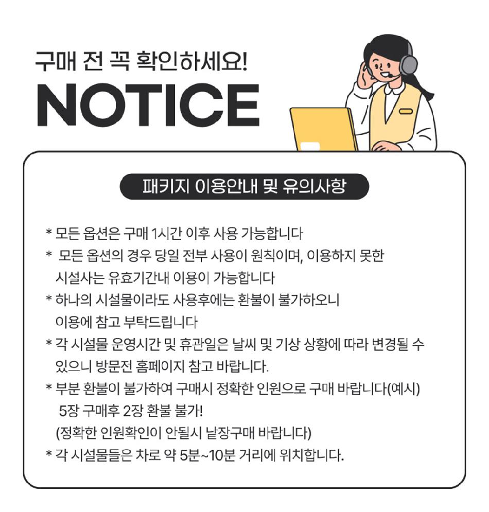 * 2) 모든 옵션의 경우 당일 전부 사용이 원칙이며, 이용하지 못한 시설사는 유효기간내 이용이 가능합니다