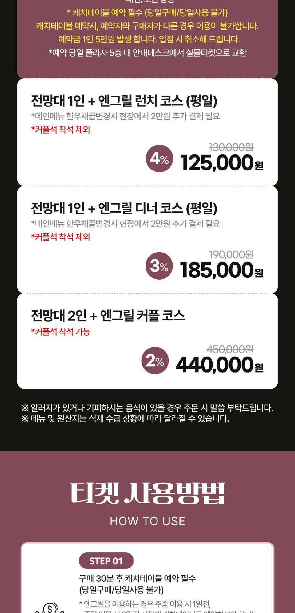 * 1. 구매 30분 후 캐치테이블 예약 필수 (당일구매/당일사용 불가)