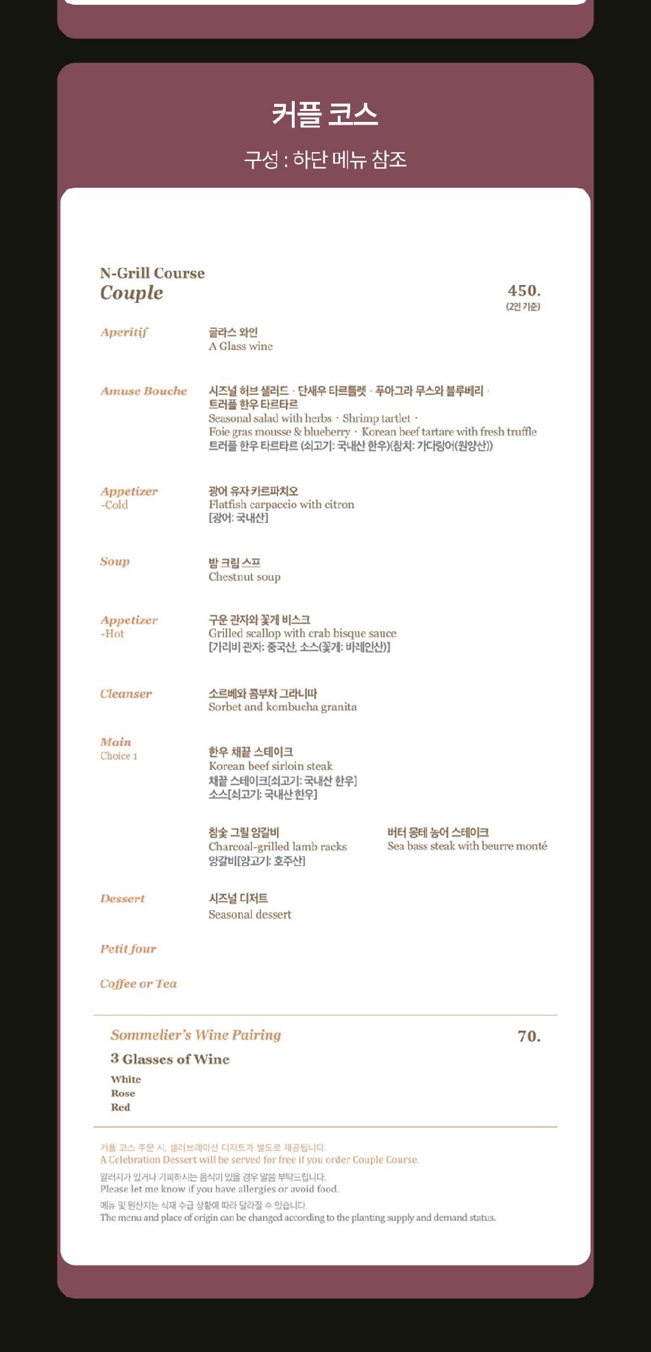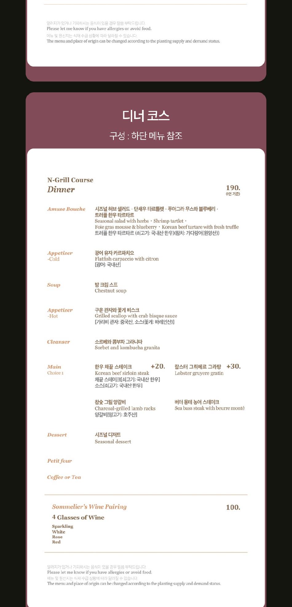 - 엔그릴을 이용하는 경우 주중 이용 시 1일 전, 주말 이용 시 3일 전 사전에 캐치테이블로 예약하셔야 합니다.