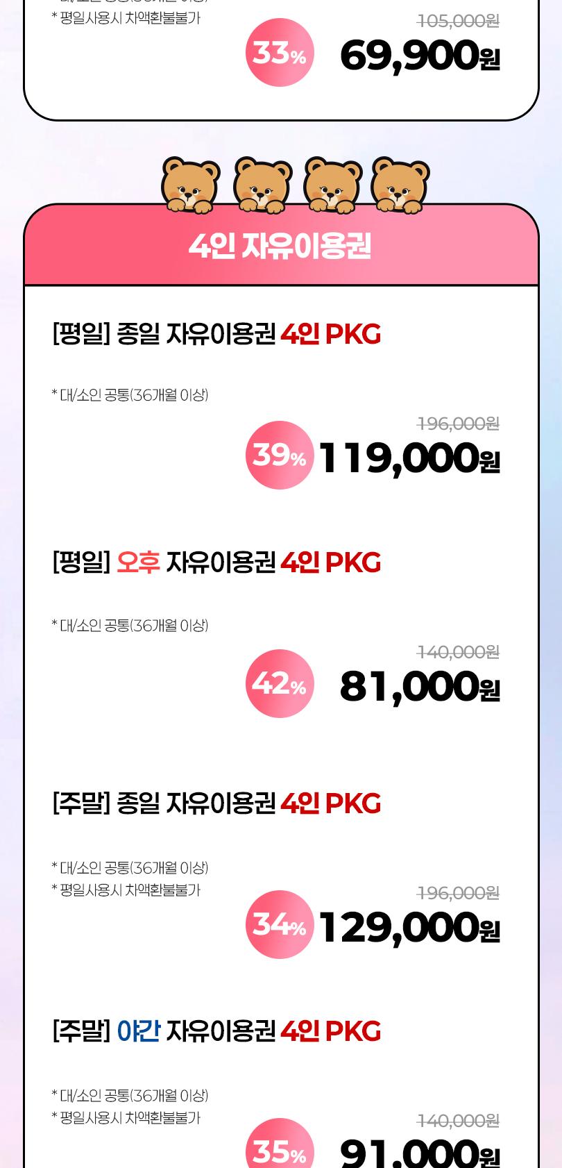 * PKG 상품은 부분 환불 불가합니다.