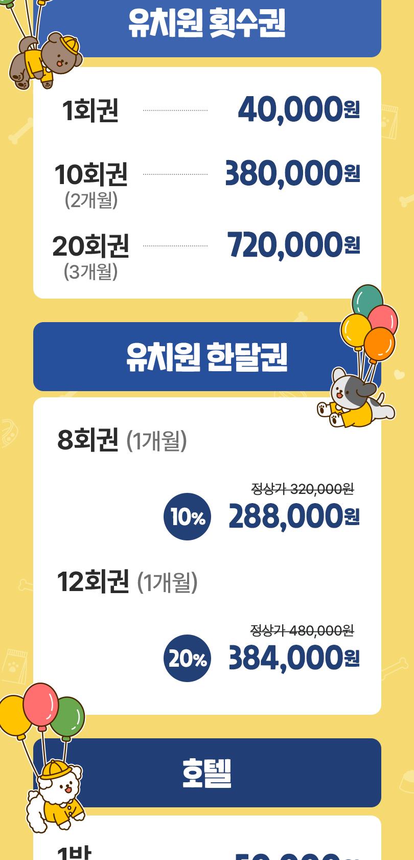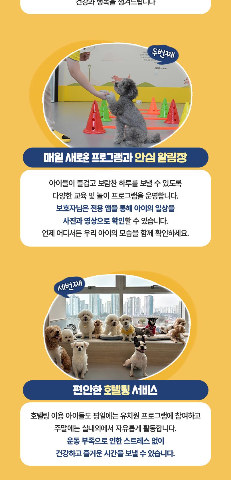 * 반려견 건강 상태는 사전에 반드시 유치원 측에 고지해야 합니다.