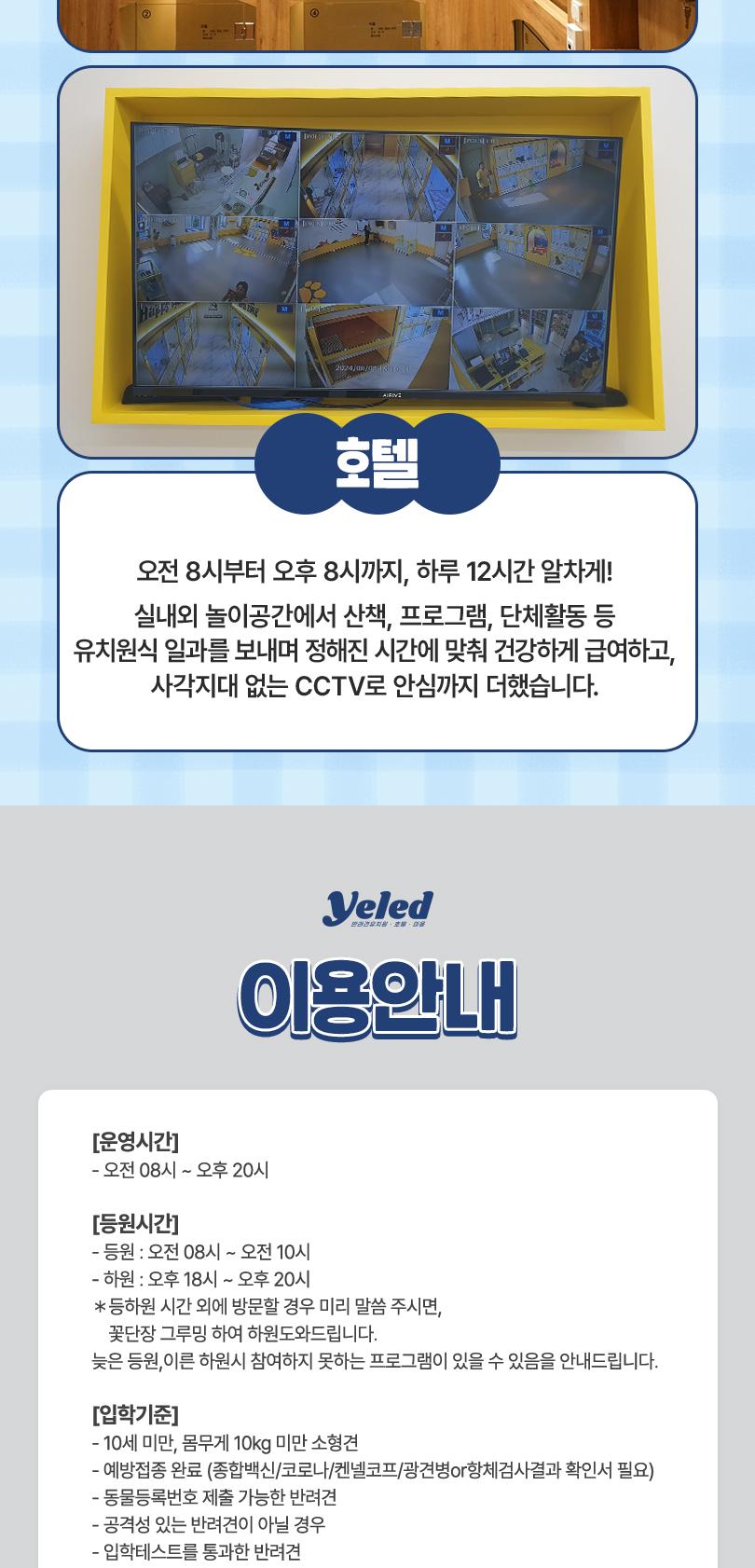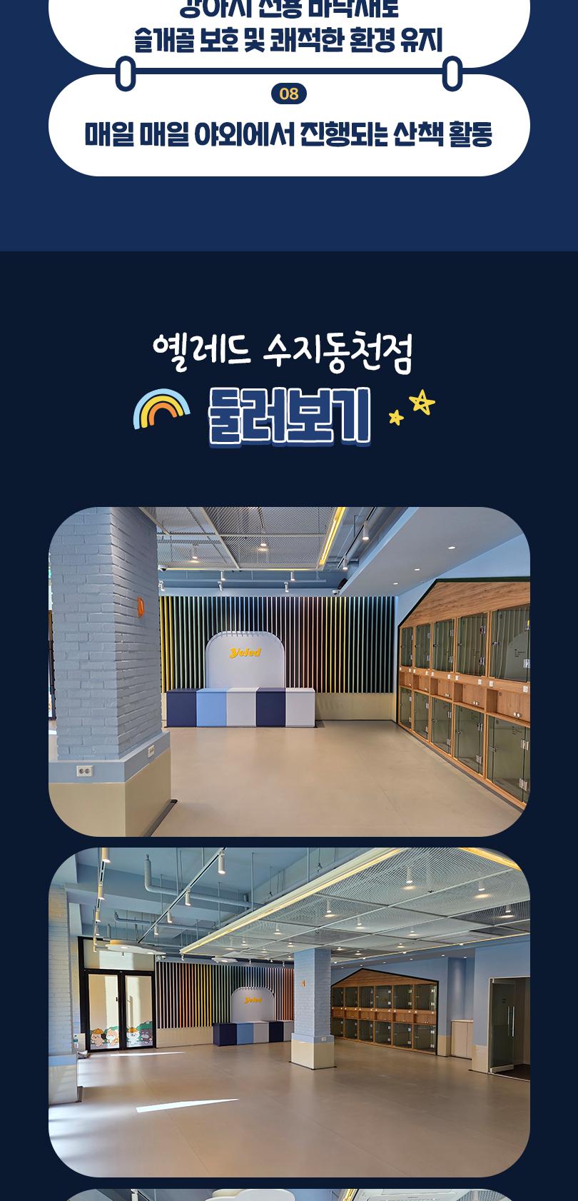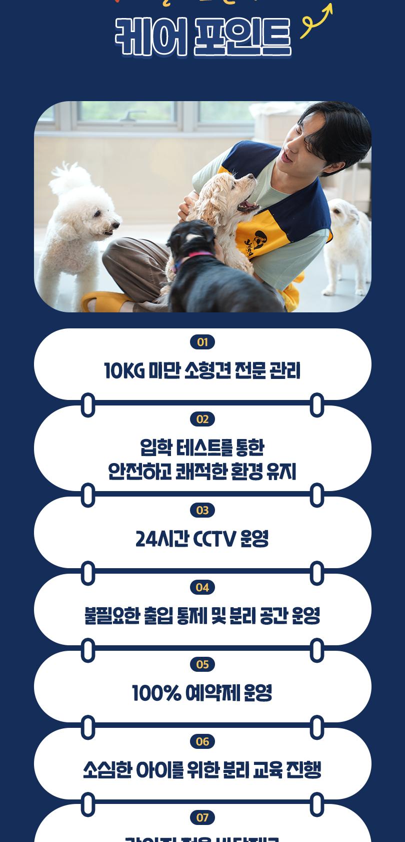 * 활동량이 많은 공간으로 노견 및 건강 이슈가 있는 친구는 입학테스트 후 입학제한이 될 수 있습니다.
