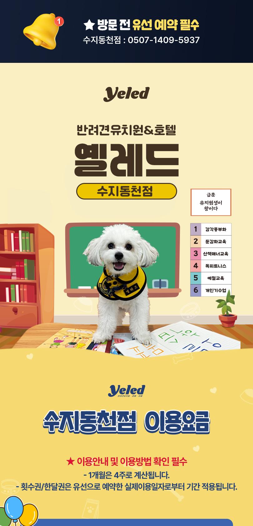 * 2. 옐레드 수지동천점(0507-1409-5937)으로 유선 예약