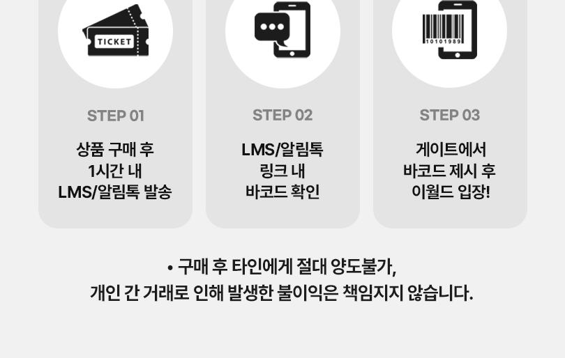 - 이월드 입장 바코드 인식 시 할인요금이 적용됩니다. (입장 후 적용가능)