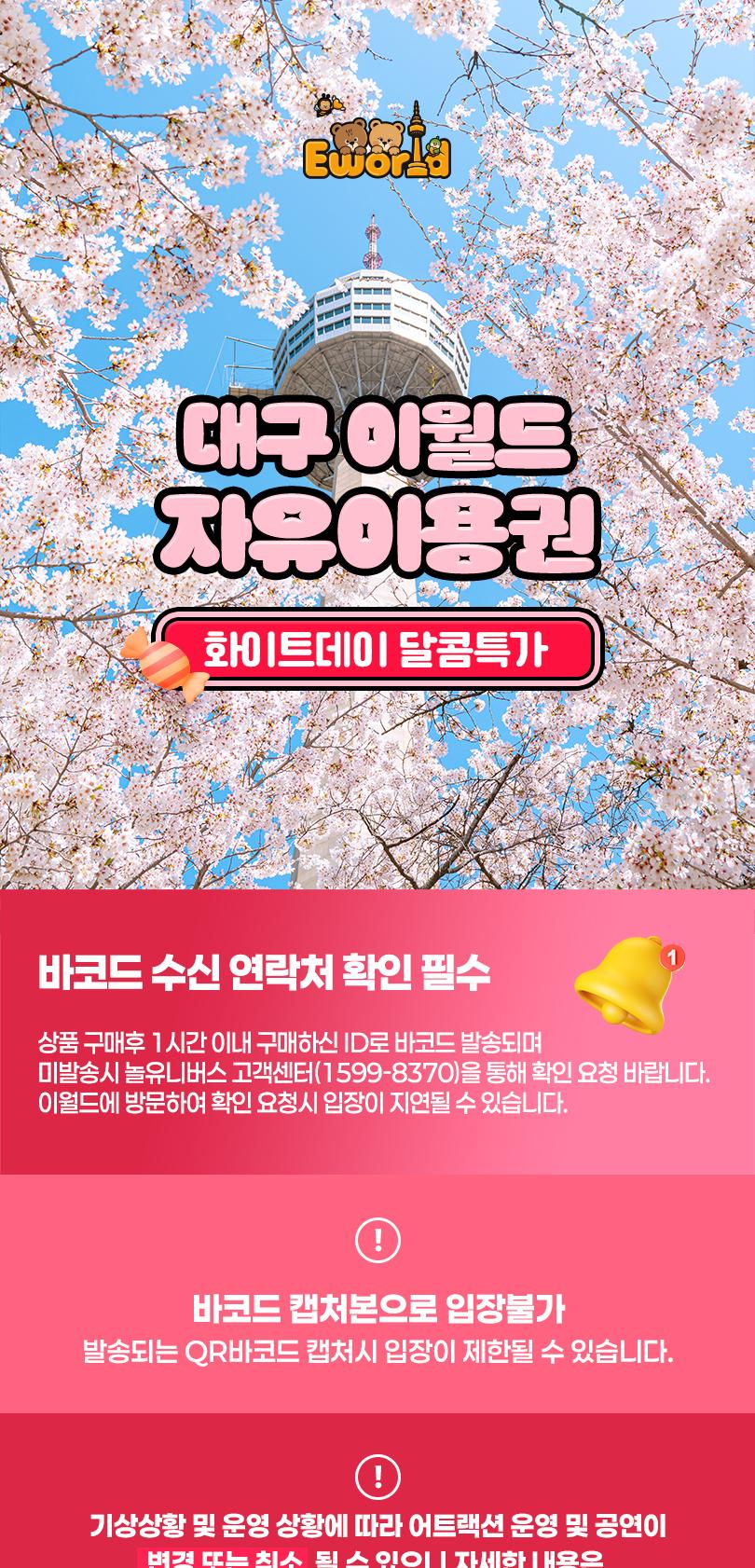 * 우천시 실내기종 위주로 운영되며, 이월드 입장 후에는 환불 불가합니다.