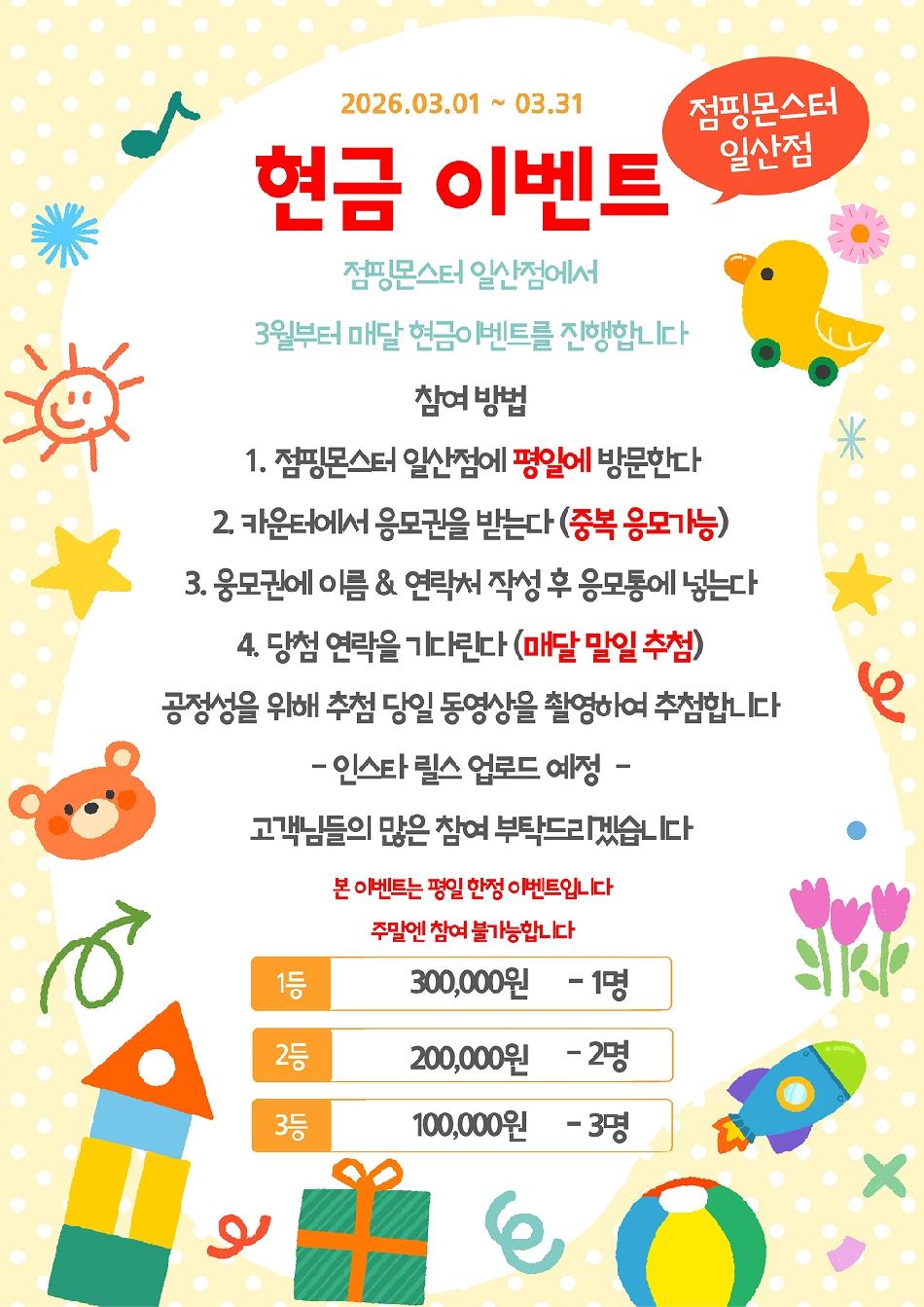 * 미열이나 전염성이 있는 질병을 앓고 있는 아이는 입장이 불가합니다.