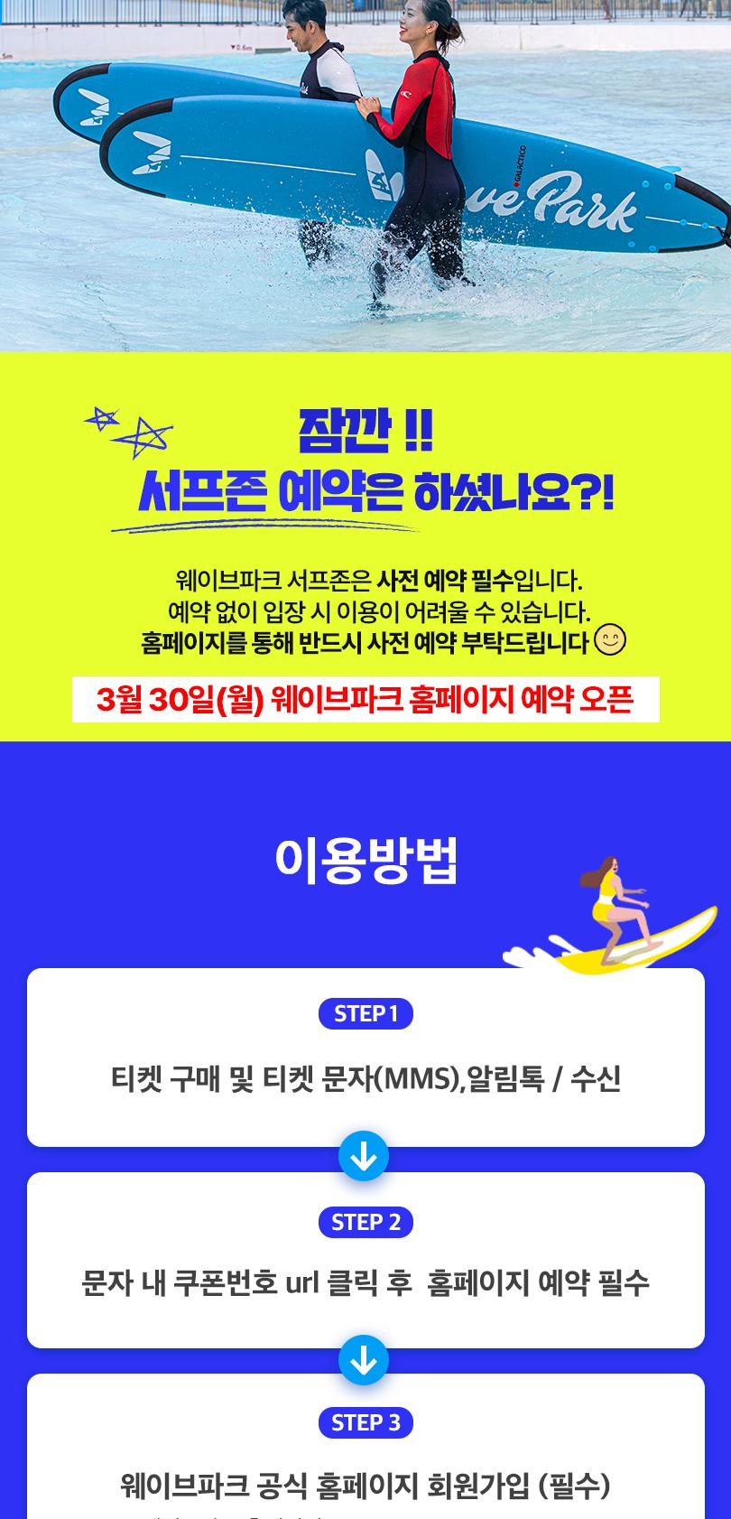 * ※ 웨이브파크 서핑 이용 시, 홈페이지를 통한 예약 필수입니다